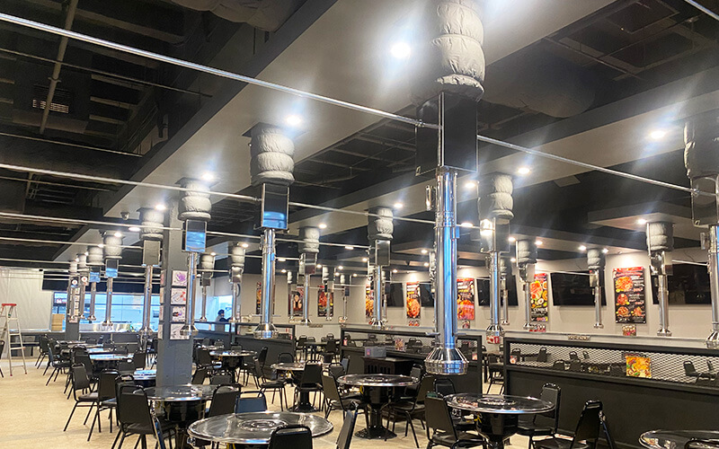 Gaon installed a high-efficiency hood system at Honey Pig Korean BBQ, tailored to manage the intense smoke generated by tabletop grilling. The system ensures optimal air quality, enhancing both kitchen operations and the dining experience.