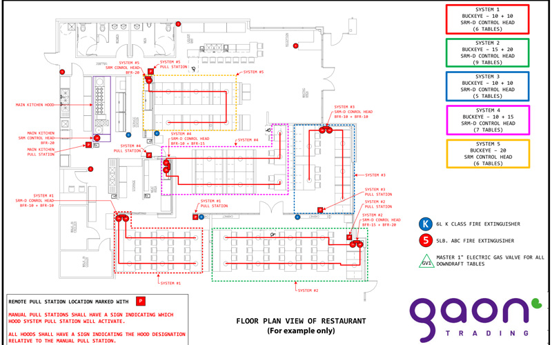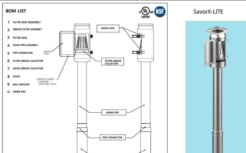 Please note that we only supply the hood and grill. We are not involved in any installation work. All installations must comply with your local city codes. The attached is a sample drawing of our SavorX fire suppression system.